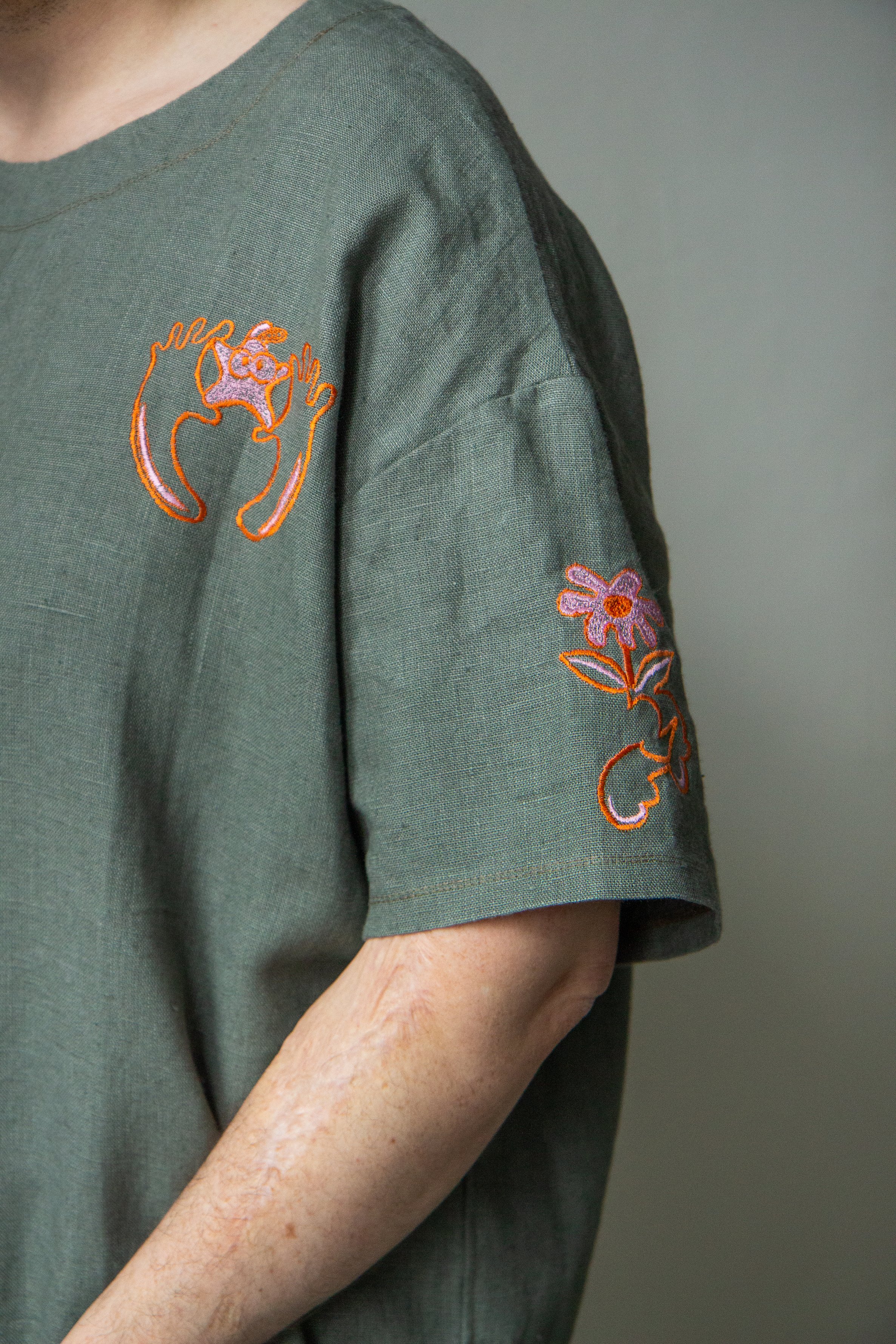 Unisex lněné tričko je univerzální kousek pro všední den. Oversized tričko je ušito z materiálu v plátnové vazbě bez přidaných elastických vláken, to oceníte zejména kvůli tomu, že si dokáže udržet svůj tvar i po mnoha vypráních. Chceme, aby se v tomto tričku cítili dobře úplně všichni, proto jsme zaoblily střih ramenních švů, aby se hravě přizpůsobilo každému typu postavy.